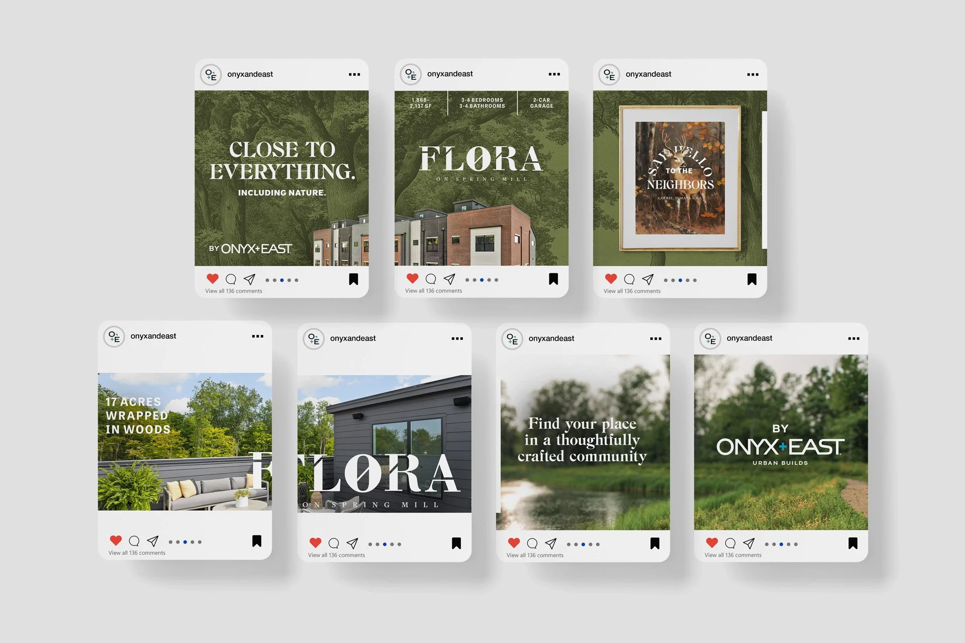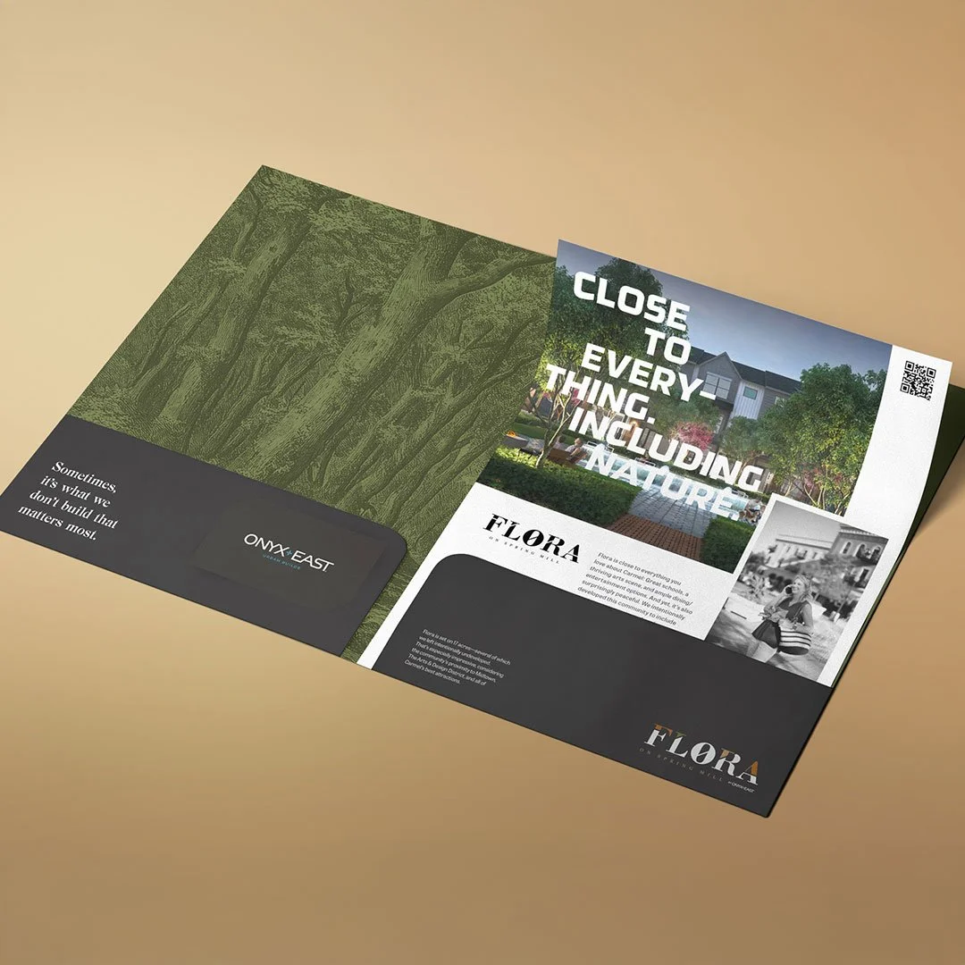At The Flatland, we partnered with Onyx+East to develop and launch the brand for their Carmel property, Flora. Building from an existing logo and color palette, we crafted a cohesive brand voice and visual aesthetic designed to communicate the lifestyle and experience the community offers.